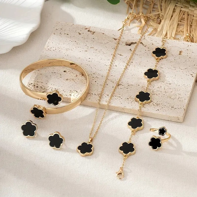 Lucky Clover Bracelet, Necklace, Earrings, Bracelet, Ring Set of Five